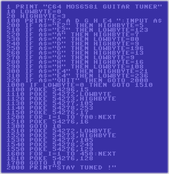C64 SID MOS 6581 GUITAR TUNER PROGRAMM